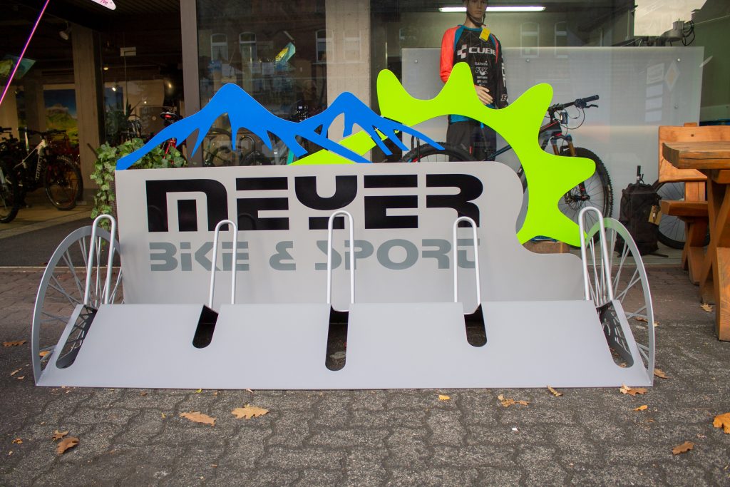 Gleich zwei individuell angefertigte Fahrradständer durften wir unserem Partner https://www.bikesport-meyer.de/ anfertigen und liefern. Als individuell zugeschnittene Werbefläche Ideal und ein absoluter Blickfänger.