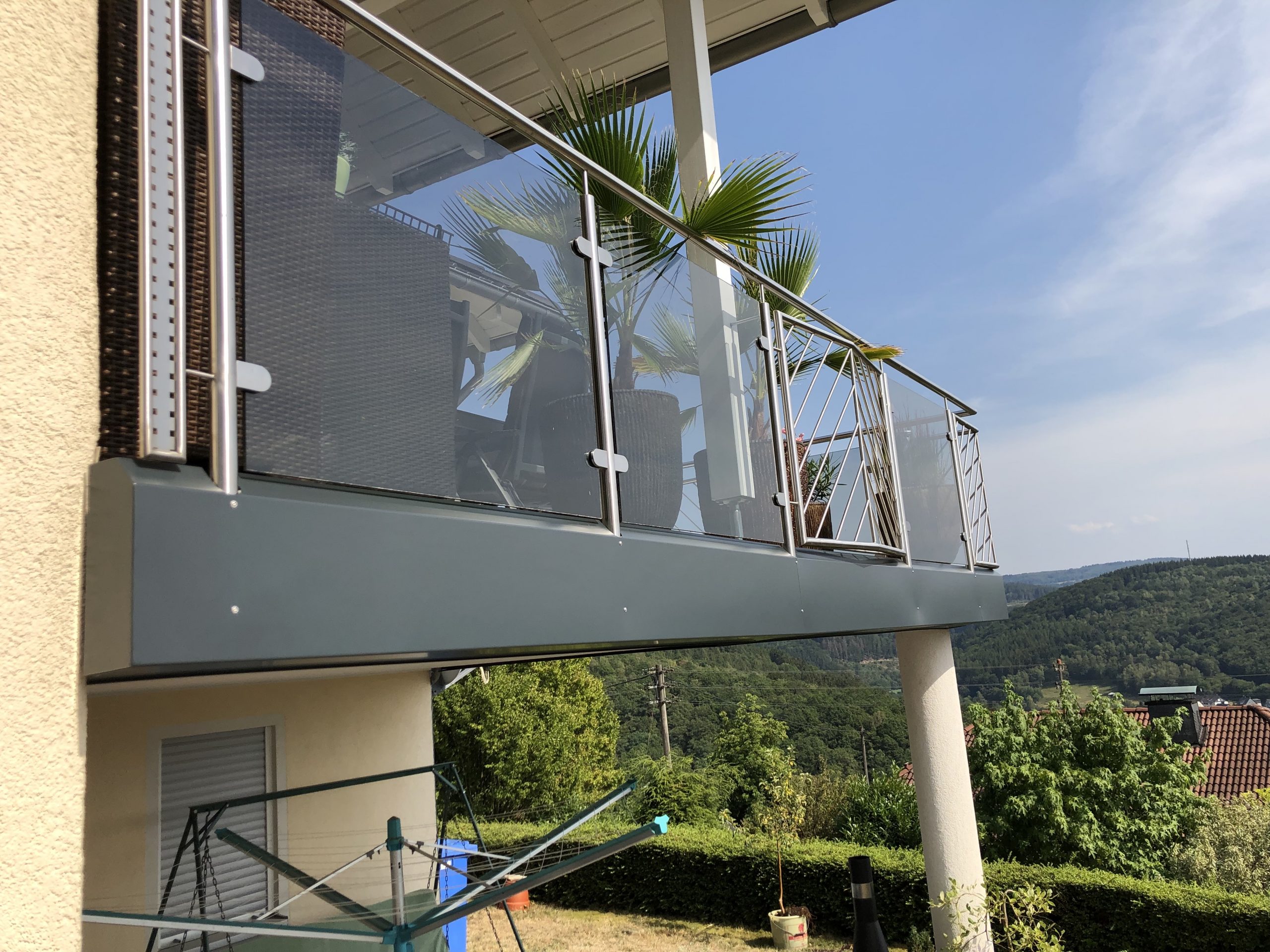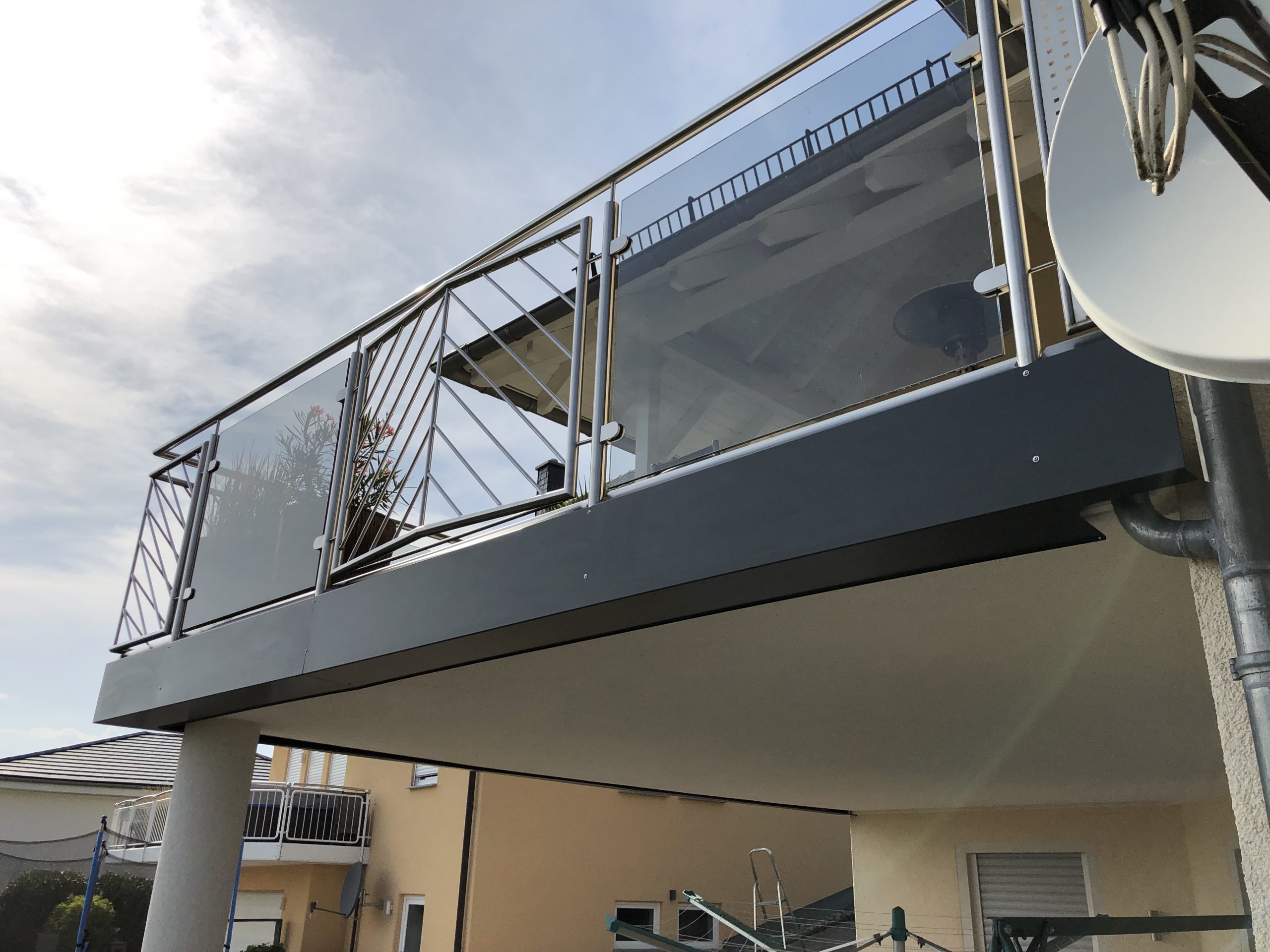 Um die hässliche Betonkante verschwinden zu lassen, haben wir hier eine wetterfeste Aluminiumverkleidung an ein bestehendes Geländer angebracht. Somit steht der schönen Ansicht nichts mehr im Wege. Natürlich angepasst an alle Gegebenheiten. Diese stabile, 2 mm starke Aluminiumverkleidung verzeiht auch mal kleine Rempler ohne Beulen. Herkömmliche Fassadenbleche wären hier direkt beschädigt und müssten ausgetauscht werden.